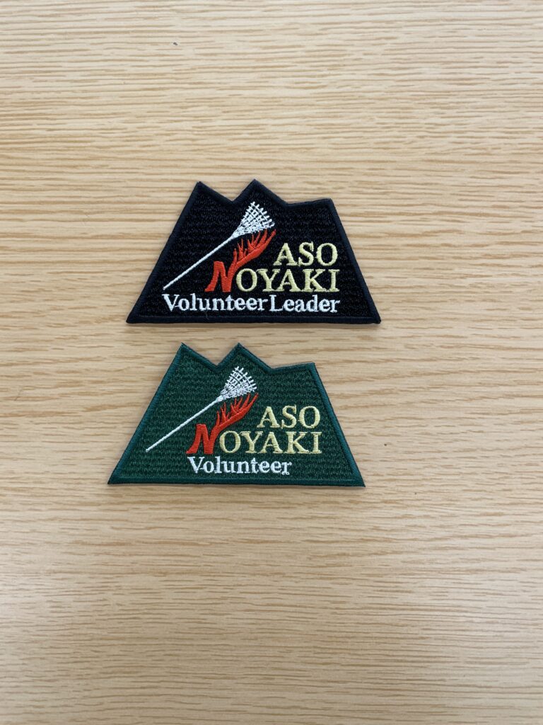 野焼き支援ボランティアリーダーの皆様より多くのご要望をいただいておりました、野焼き支援ボランティアのワッペンが完成いたしました。